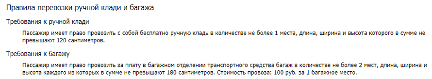 Откроется страница с детальным описанием выбранного рейса. Прокрутите страницу вниз до раздела "Правила перевозки ручной клади и багажа".