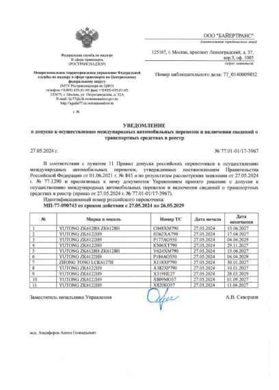 Наша транспортная компания БайерТранс зарегистрирована в г. Москва в январе 2003г.