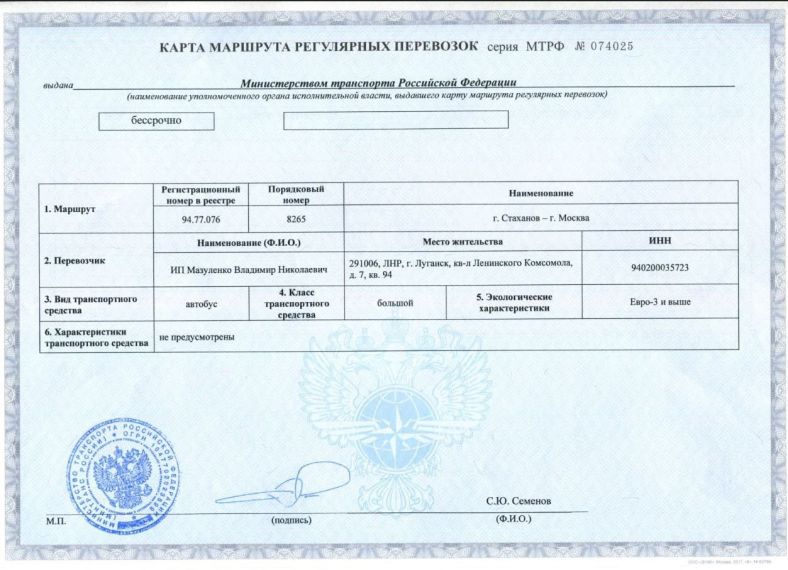 Перевозчик "ИП Мазуленко В.Н."